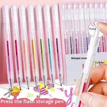 Press Glitter Pen Make It Sparkle Bolígrafo de gel de plástico Estudiantes multicolores Arena líquida Brillante Resaltador brillante